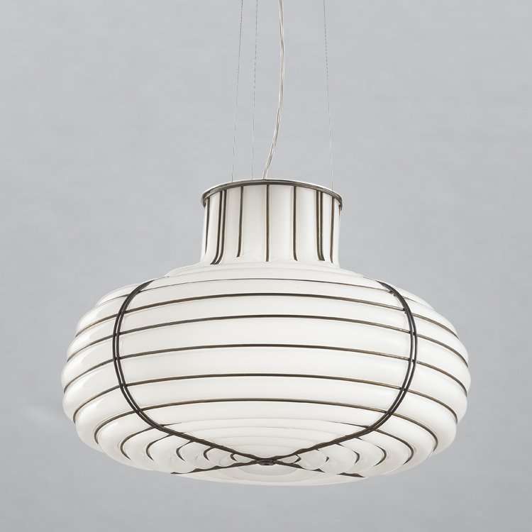 The rigorous design, punctuated by the dense weave of the cage features, allows for the creation of products that are always unique but at the same time well-defined in shape, forcing the glass to the imposed contours. A lamp with a modern, decisive style that is ideal for creating the right atmosphere in any environment.