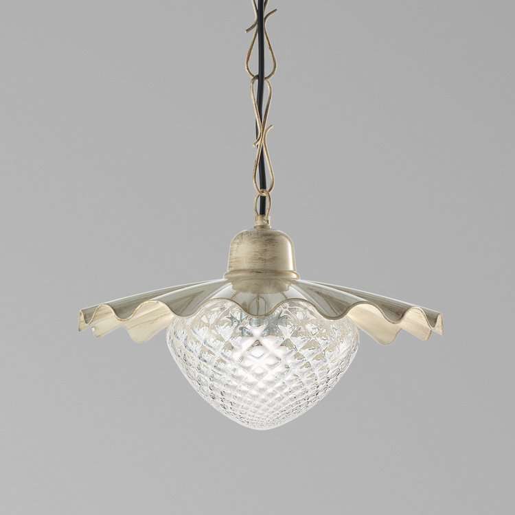 With a dreamy soul, this romantic pendant combines its fulcrum, mould-blown glass, with an open metal base in an undulating silhouette.