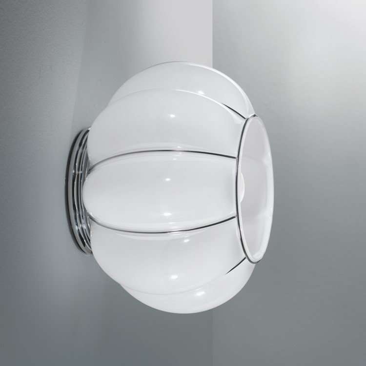 standing out among all the declinations of the series is the imposing floor lamp, a union between the different cages that mark its rounded shapes, also available in the version where the two theme colours, milk white etched glass and black, are combined.