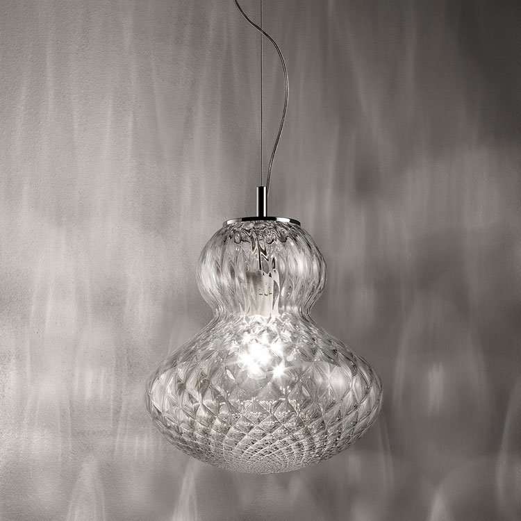 Unparalleled luminosity, capable of enhancing any context by creating enchanting atmospheres. Made of mould-blown glass, with the aim of developing a body composed of two concentric semi-spheres of different sizes connected together, Fungo fills your home with its refractions and voluptuous shape.