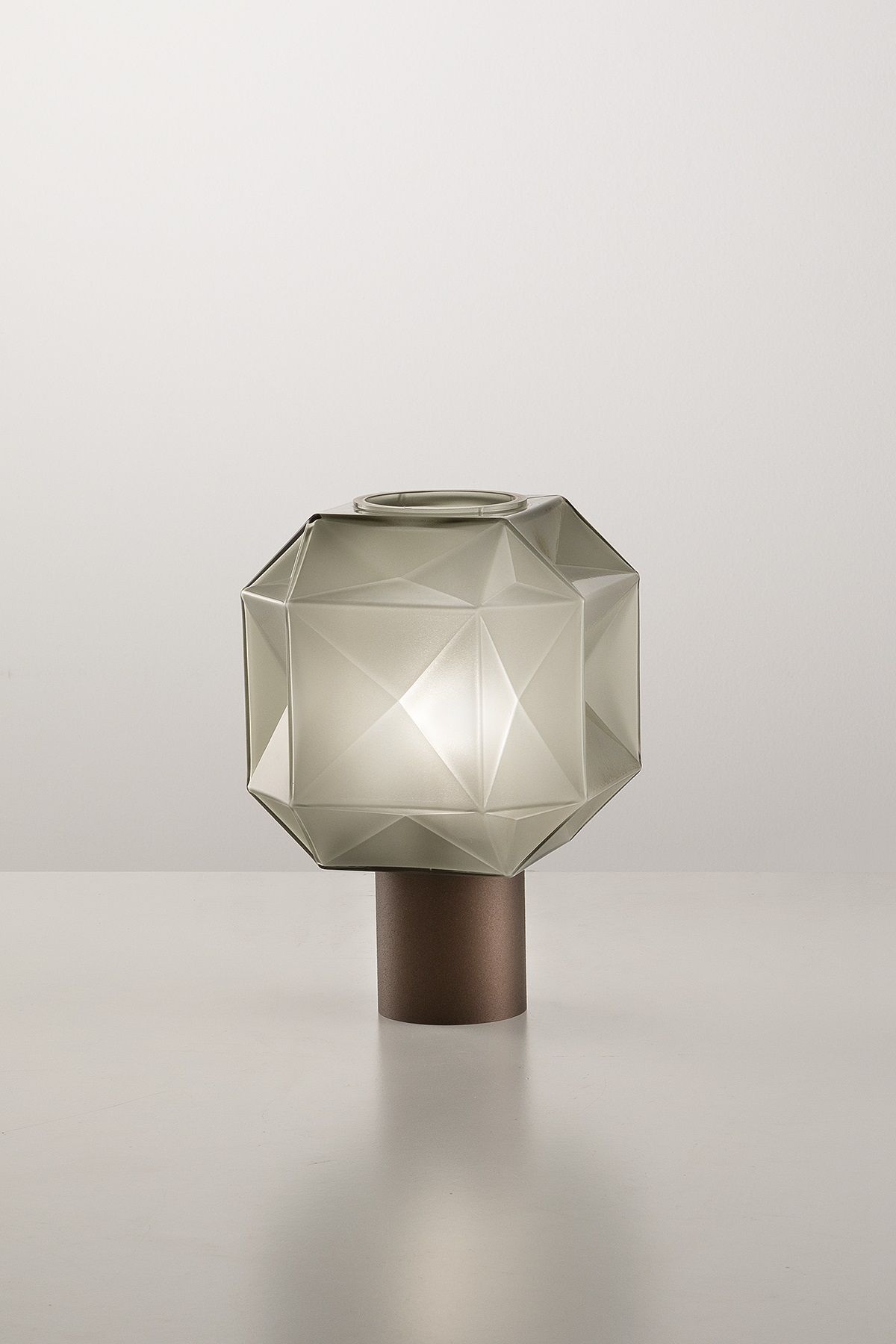 Glass skilfully blown with a mould technique gives shape to this essential volume with its geometric line.