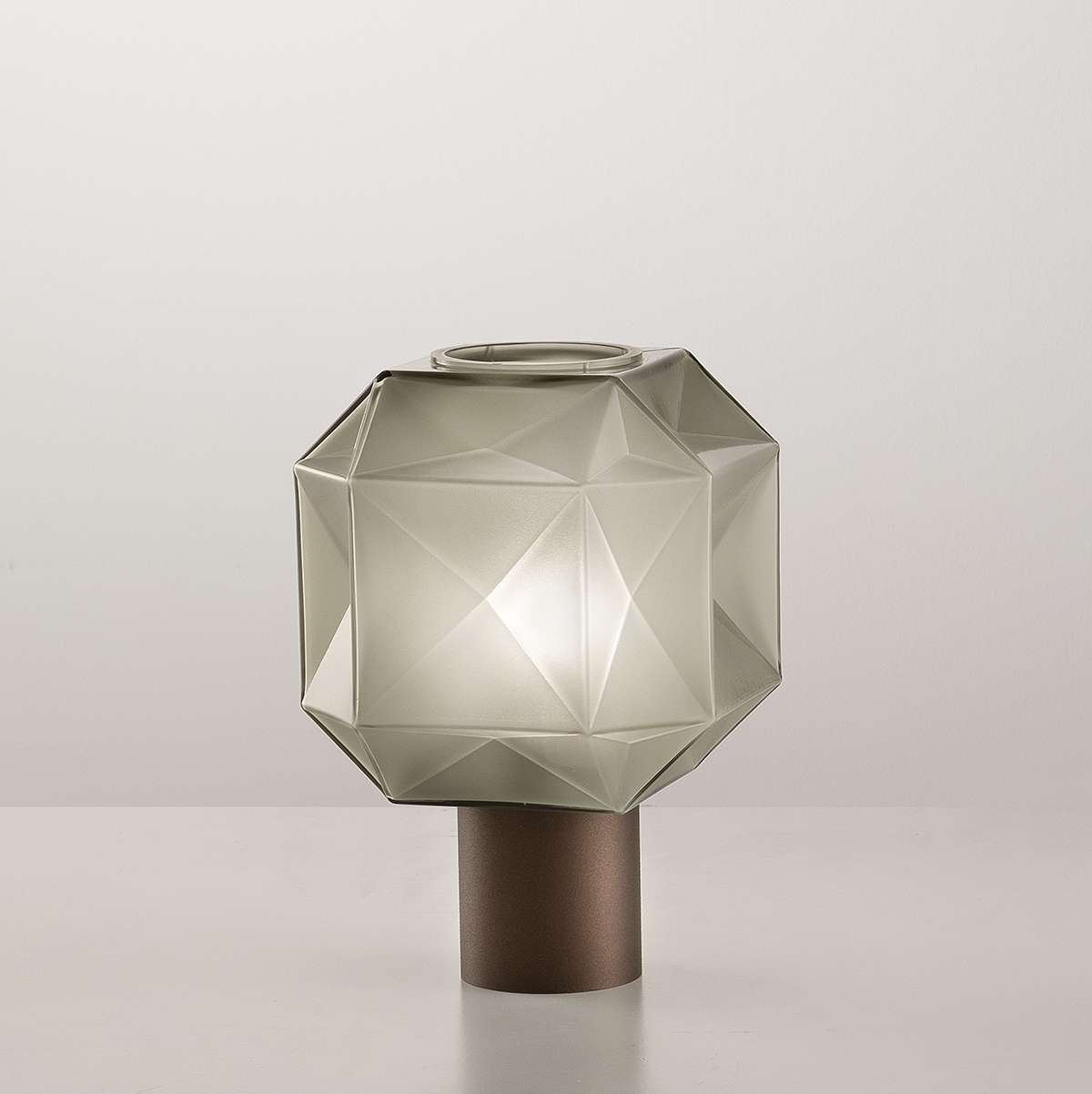 Glass skilfully blown with a mould technique gives shape to this essential volume with its geometric line.