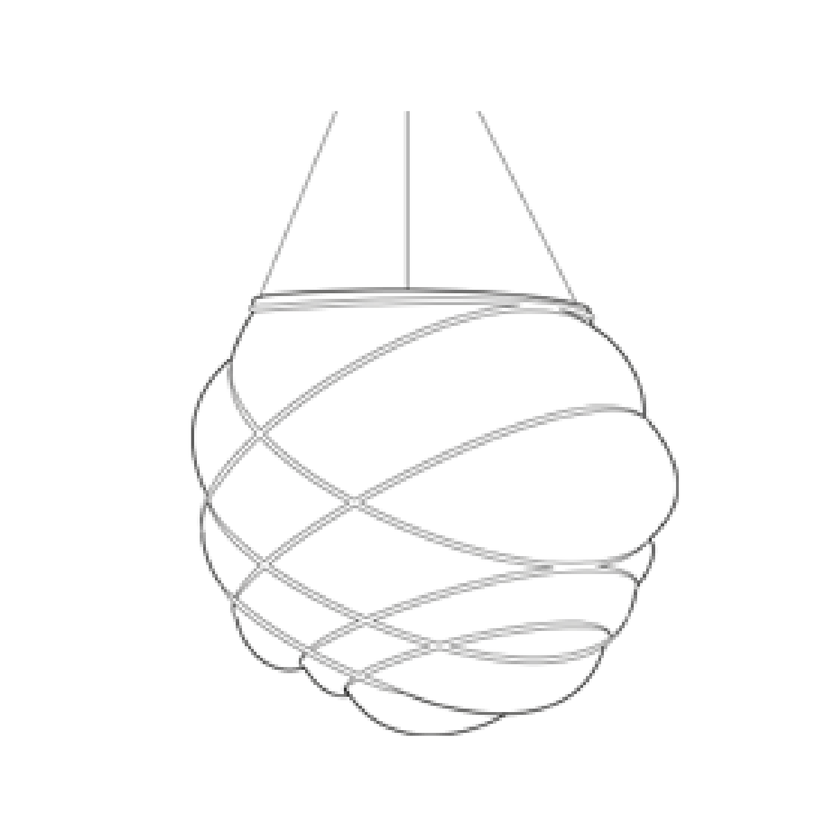 A line that leaves room for the imagination, just as clouds always suggest new visions. Glass and metal come together in this lamp with a romantic feel, giving the impression of holding each other up in a graceful dance. The cage made up of rings slides around the blown glass, creating original and airy shapes.