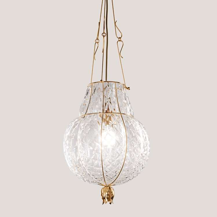 Odalisca draws its sinuous lines through the roundness of its supple form enhanced by the golden cage and balotton glass. Irresistible in any context.