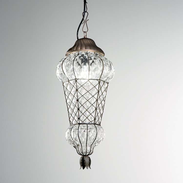 Just like the prestigious sweet symbol of Parthenopean cuisine, left to rise for a long time in an elongated truncated cone mould, Babà takes shape blown by the master glassmaker in a play of cages that are perfect in scanning the full volumes of the glass. The metal flower, the end of the cage in the lower section, is the perfect filling.