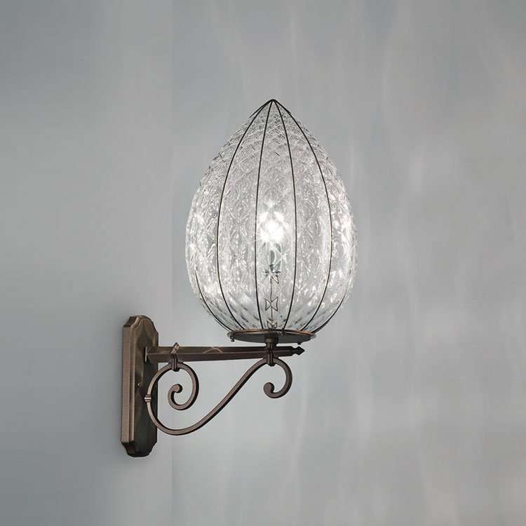 glass blown using the balotton technique embellishes this refined creation.