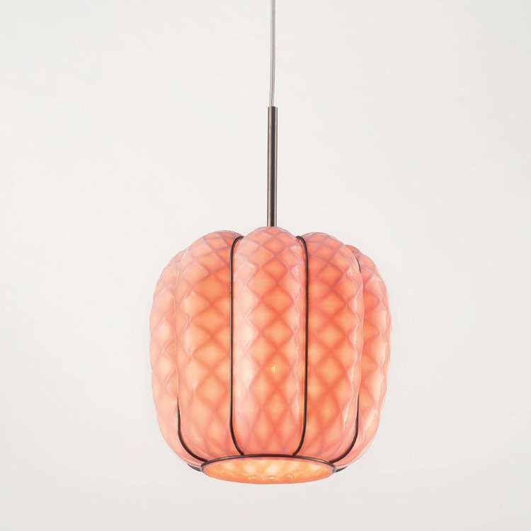 when switched off, it enriches the home with its unmistakable milk-white design, but when switched on, it lights up with the bright colours concealed in the inner glass, giving verve and volume to any room.