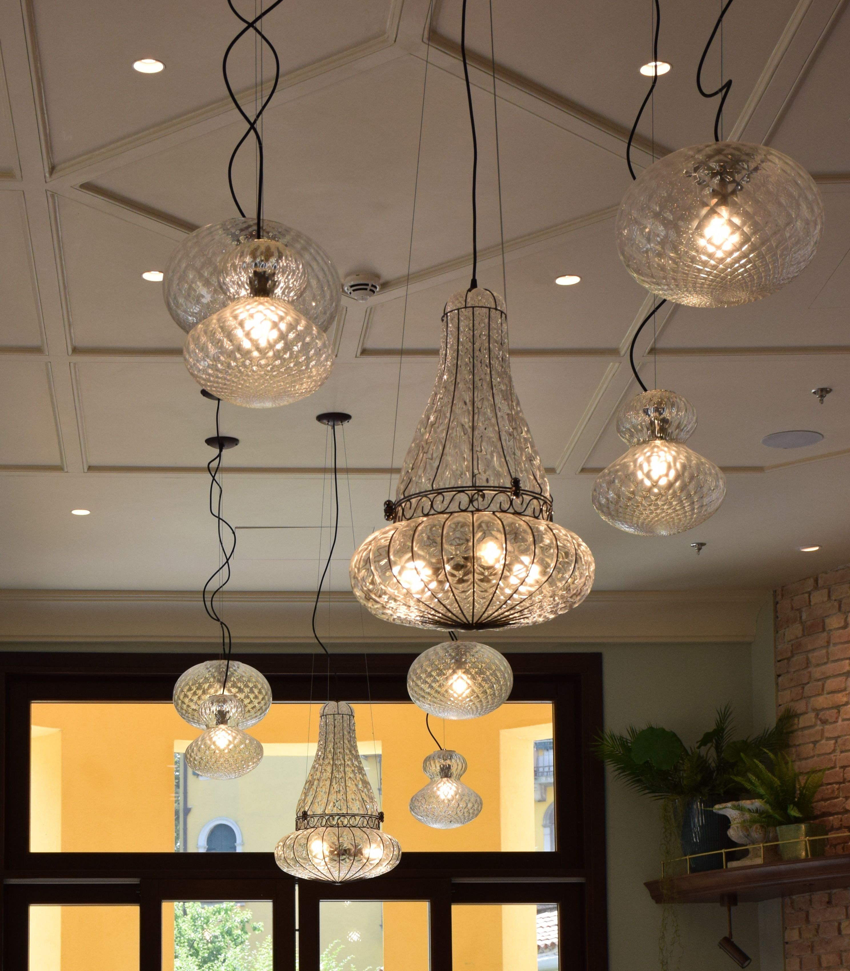 Converted from an old convent built in the 1930s, Hotel Indigo® Venice - Sant'Elena is a project realised by the architecture and design studio THDP in collaboration with HNH Hospitality. Siru's lamps were customised and customised according to the design requirements. There are the Pozzo table lamps positioned on the bar counter, and the Fungo and Bolla lamps hanging from the ceiling in the restaurant and corridors.
