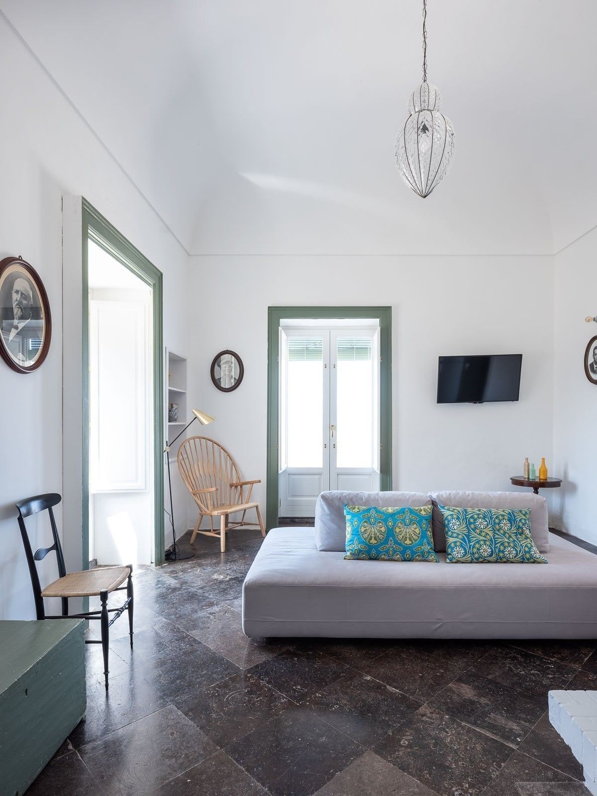 The interior design project blends traditional and contemporary elements, enhancing each space with striking aesthetic solutions. The accent lighting is designed by Siru, featuring the Poveglia pendant lamp — chosen to add a touch of sophisticated craftsmanship to the villa’s interiors.